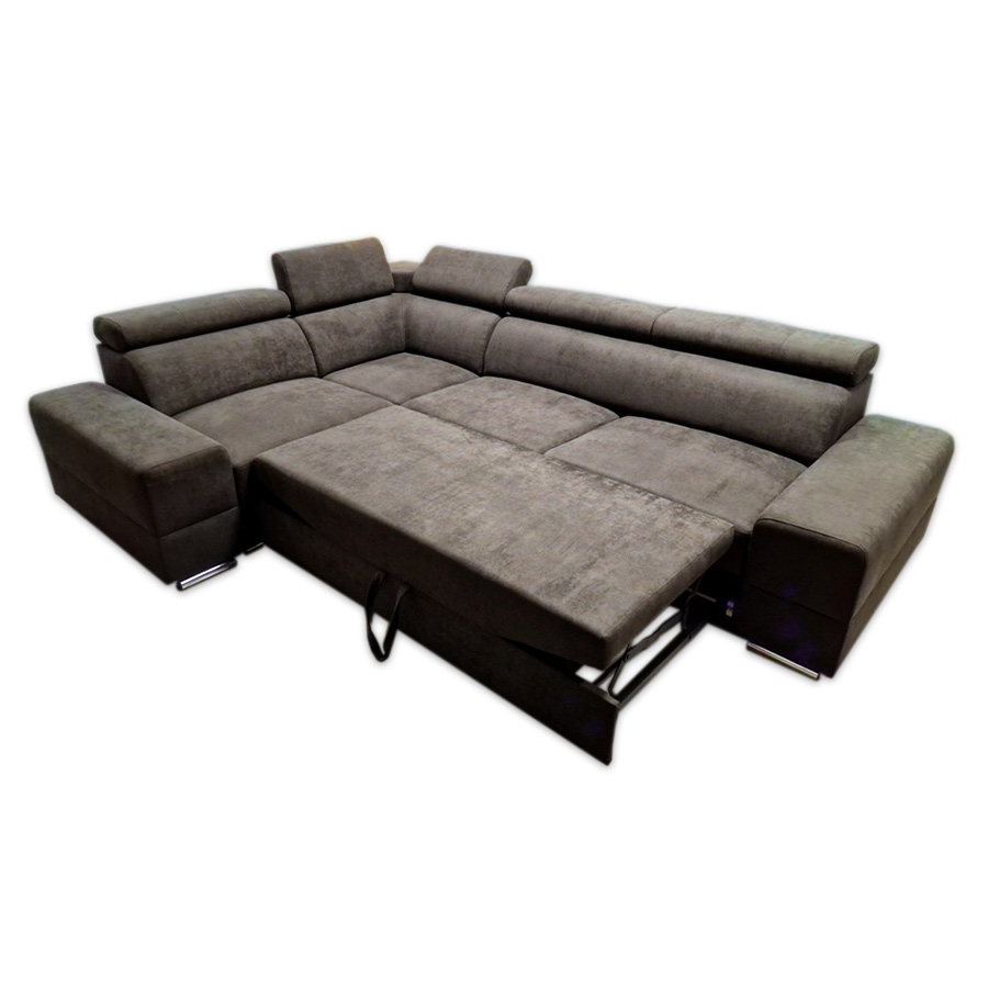 Nowoczesny, komfortowy i reprezentacyjny narożnik.. Z funkcją spania oraz pojemnikiem na pościel. Siedziska wykonane na wysokiej jakości sprężynach. Pięknie  się  prezentuje ,narożnik może stać na środku pokoju , gdyż  cały tył obity jest tkaniną .Występuje w wersji lewo lub prawostronnej.